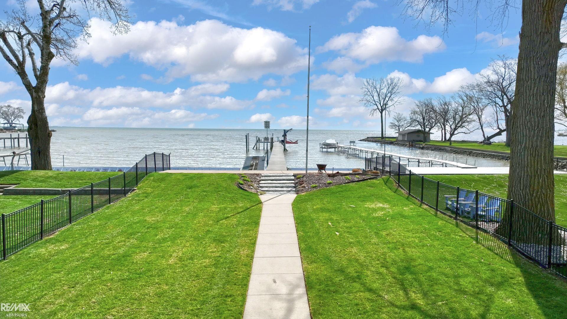 Beautiful Custom Waterfront Home with stunning views of Lake St.Clair! On unique bay with sandy bottom,200'STEEL DOCK,10,000lb electric hoist,ATV ramp and on a private low traffic street!! Open Floor Plan,19'Ceiling,Custom Kitchen,walk-in pantry,ice-maker,island & dining area overlooking the lake.Large great room,2 story stone gas fireplace,Main Floor Primary Bedrm with En-Suite and his & her closests,3 more Bedrms each with full bathrms.Office has custom tiger wood floor.Upstairs entertainment area with Wet Bar.Large bonus room.Main Floor & Upstairs Laundry.Heated Tile Flooring including all 4.5 bathrms,kitchen,dining rm,hallways & wet bar area.Upstairs mechanical room containing boiler system & upstairs furnace.Storage Galore in the 3.5 attached car garage with heated floors & the 1700sf detached heated 4 car garage/barn.Heavy duty 400' long driveway constructed of 8" & 6"concrete.Fenced in lake side yard! And SO MUCH MORE,Ask for the Detailed Custom List!*NO Flood Insurance Needed!